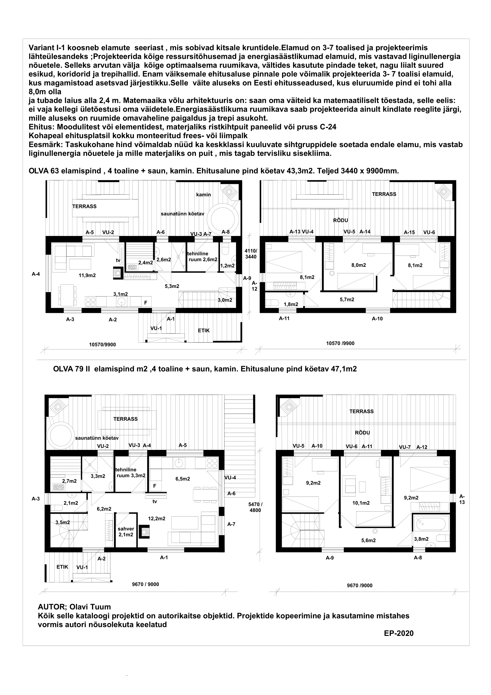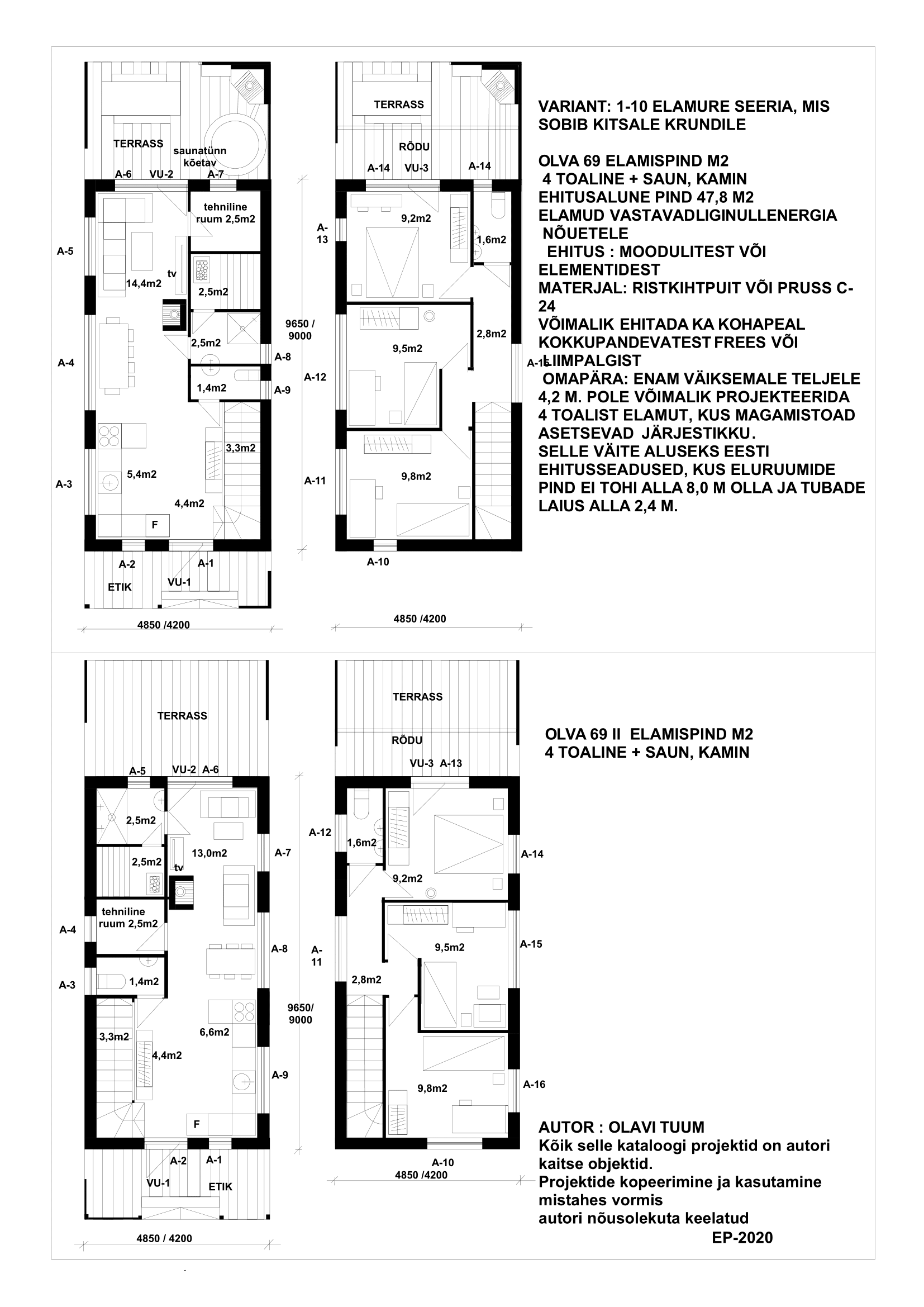1 – Innovaatilised ideed on kajastatud arendusprojektides nr 1-9 ja kokkuvõtvalt tõenäoliselt kõige energiasäästlikumad, materjali, kuju, ruumikava ja kontsruktsioonilises osas (kehtib hoonete kohta, mis vastavad liginullenergia ja rohetehnoloogia nõuetele)